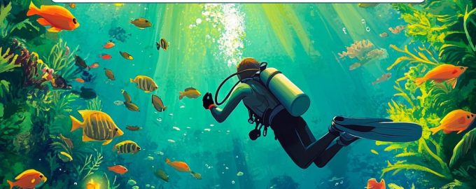 تُظهر الصورة غواصًا في منظر طبيعي تحت الماء. مهمتك هي فحص الصورة بعناية والعثور على خطأ فادح فيها. أحد الأجزاء المعروضة غير ممكن.